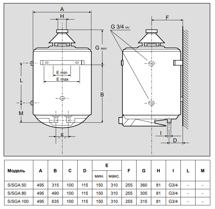 Они могут применяться как в бытовых, так и в промышленных целях. Настенные водонагреватели SUPER SGA могут вмещать до: 50л, 80л, 100л.